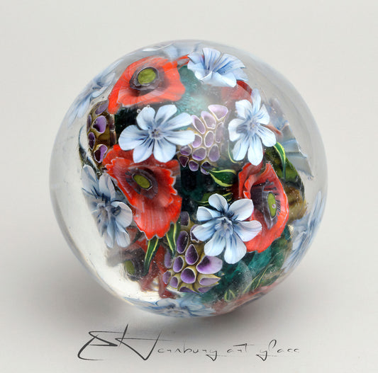 Marble "Air of Poppies" Glass. Collectible sphere. 39 mm (1.53”).