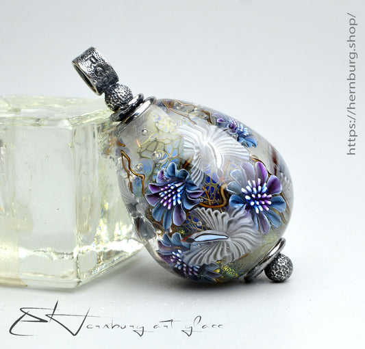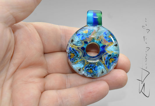 Pendant. Blue Blossom. Lampwork glass pendant.