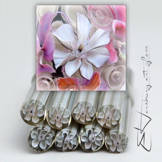 Murini white flowers. Sticks 5 cm long. Materials for lampwork. Glass COE104