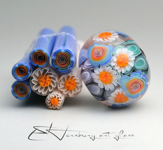 Murini flowers. Sticks 5 cm long. Materials for lampwork. Glass COE104