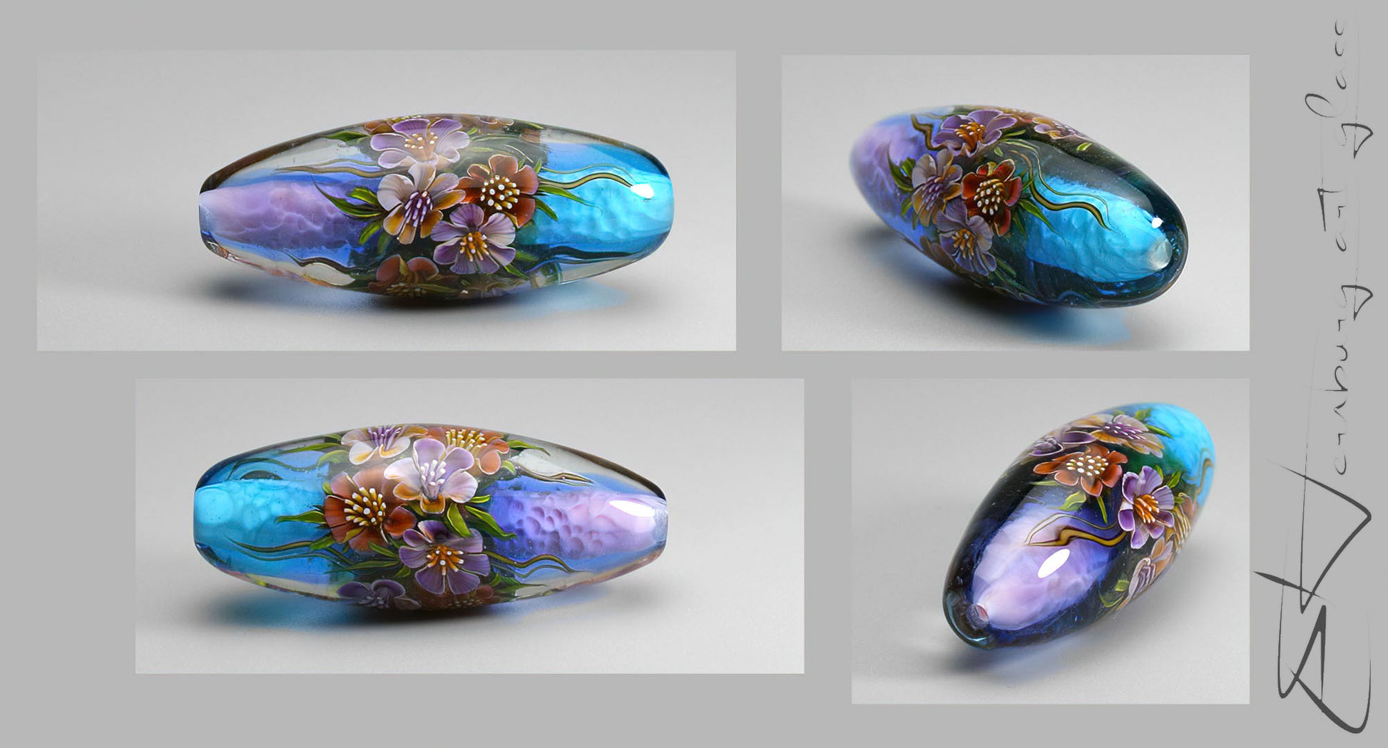 Like everything else in my shop, it is made by me from glass in an open flame. I use glass from all over the world to combine them in the fire and get amazing results.