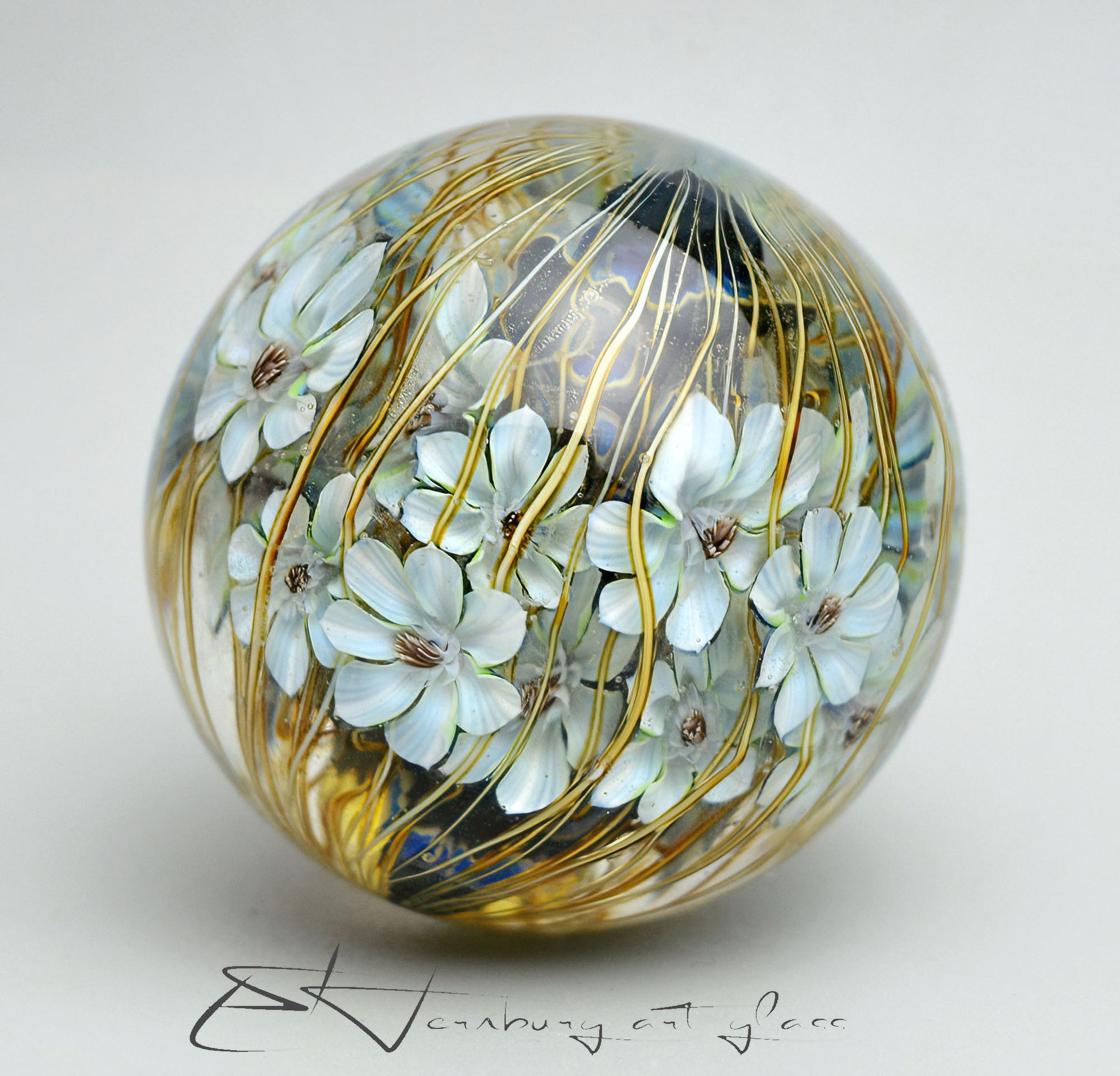 Marble "Branchella White" Glass. Collectible sphere. Diameter — 40 mm (1.57”).