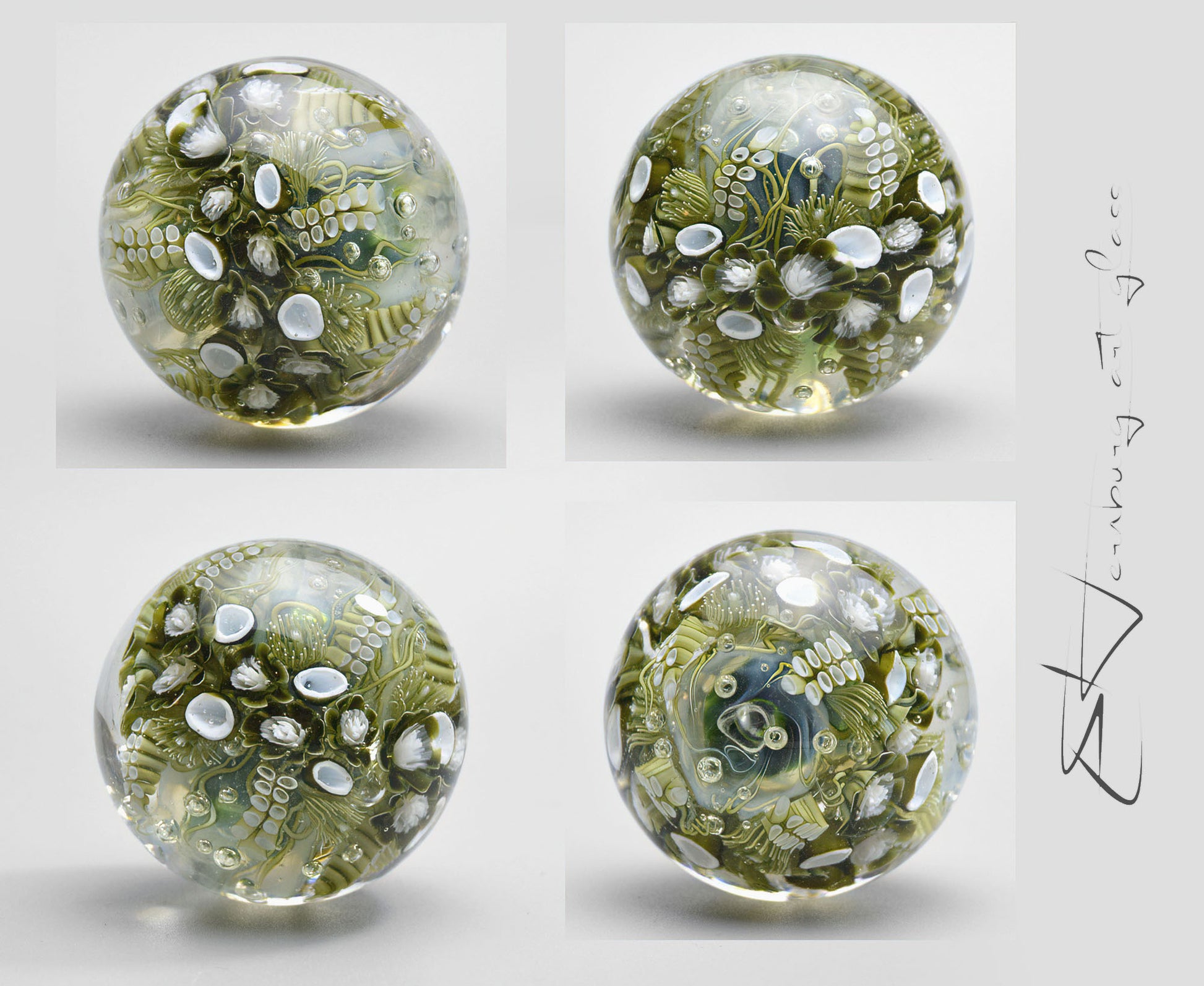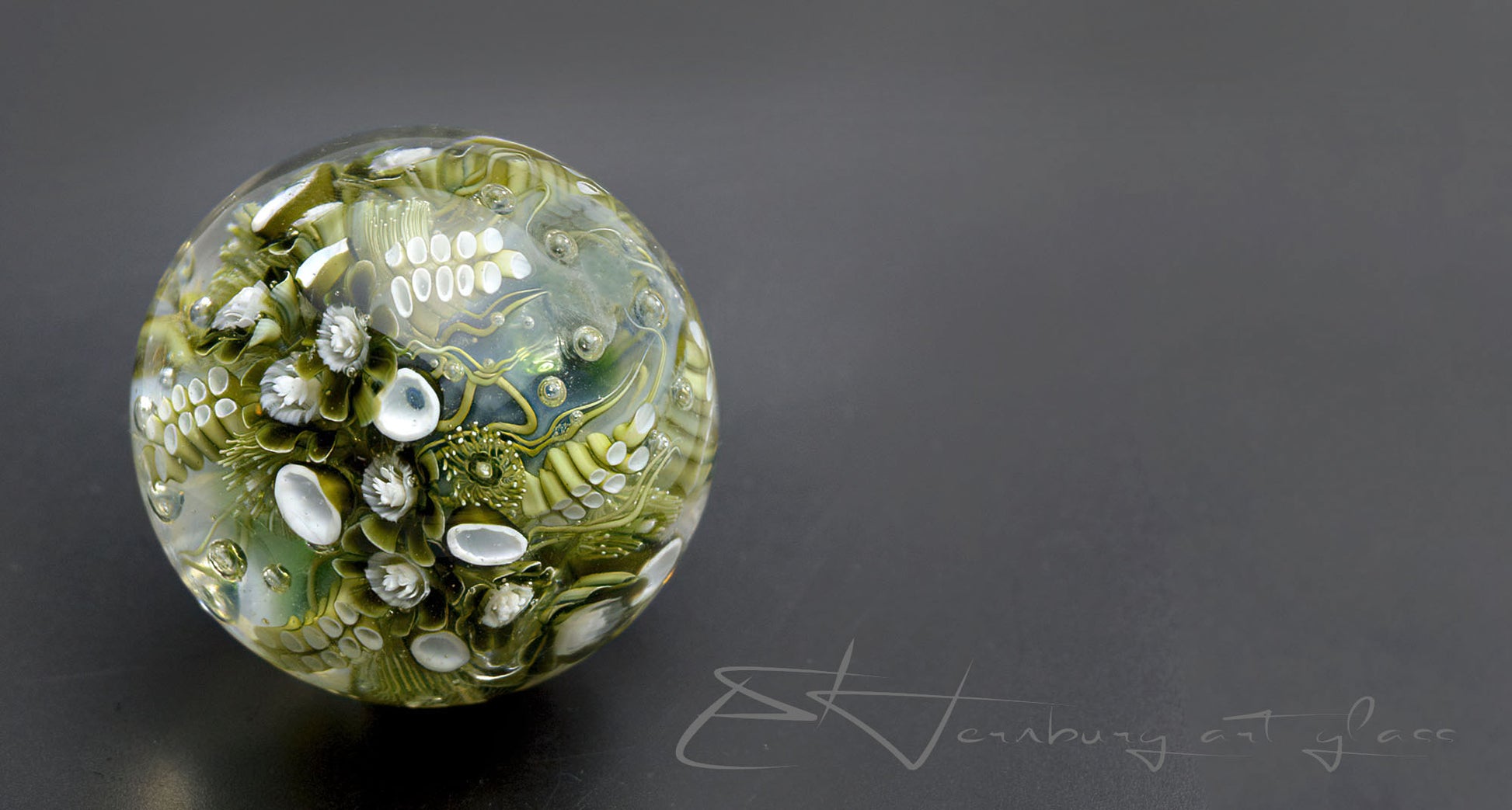 Like everything else in my shop, it is made by me from glass in an open flame. I use glass from all over the world to combine them in the fire and get amazing results.