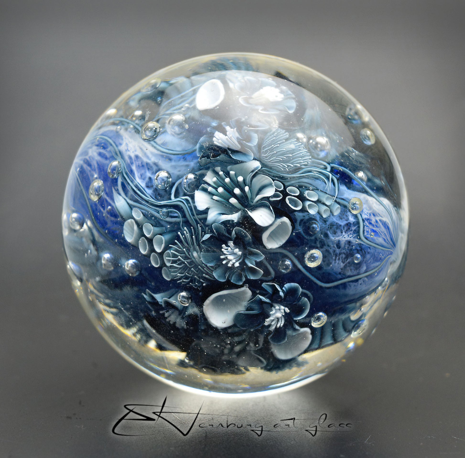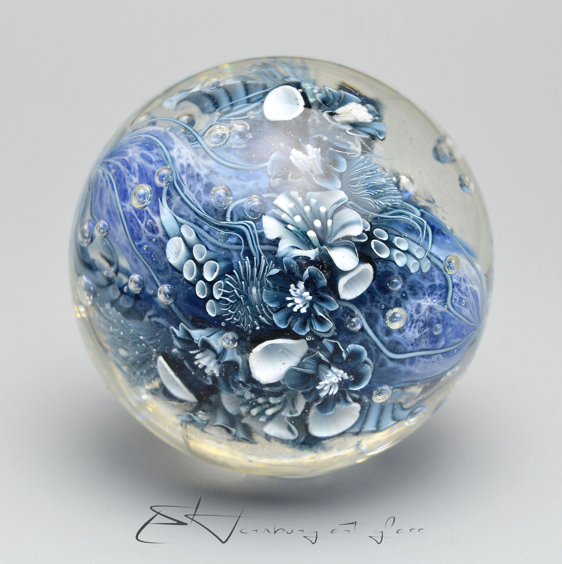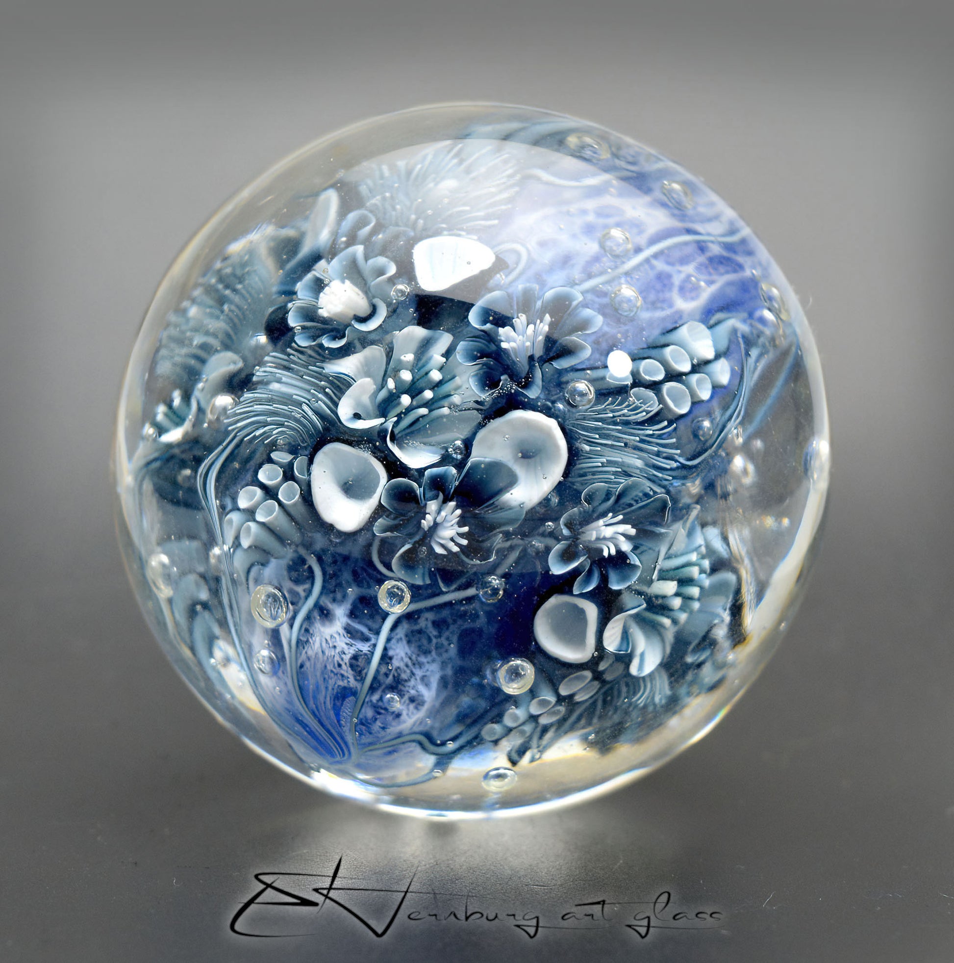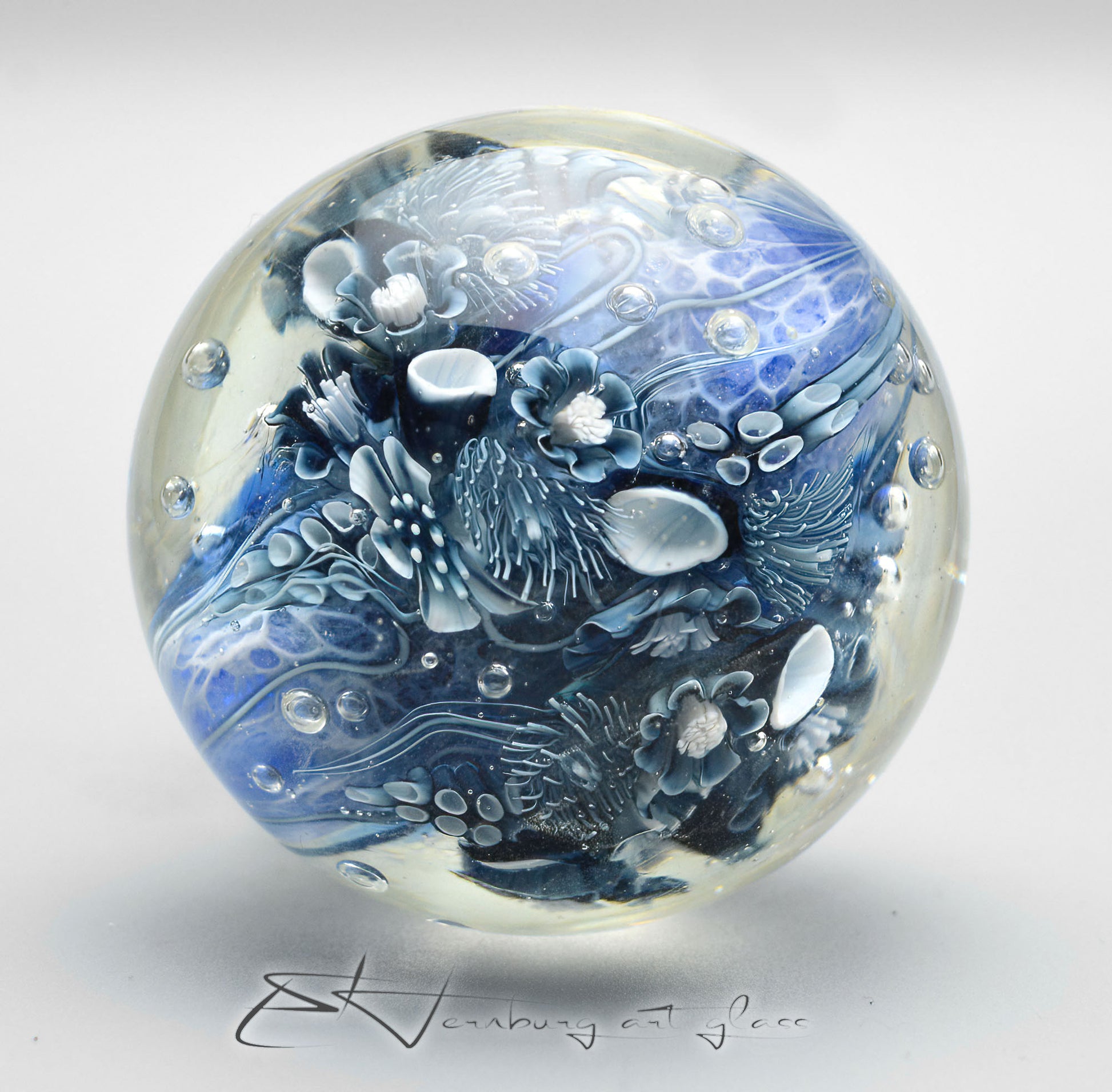 Like everything else in my shop, it is made by me from glass in an open flame. I use glass from all over the world to combine them in the fire and get amazing results.