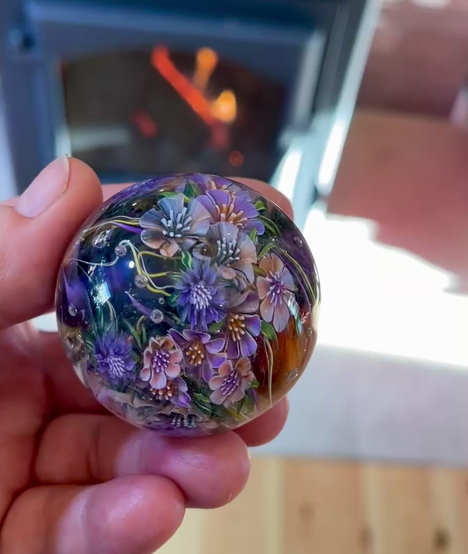 Like everything else in my shop, it is made by me from glass in an open flame. I use glass from all over the world to combine them in the fire and get amazing results.