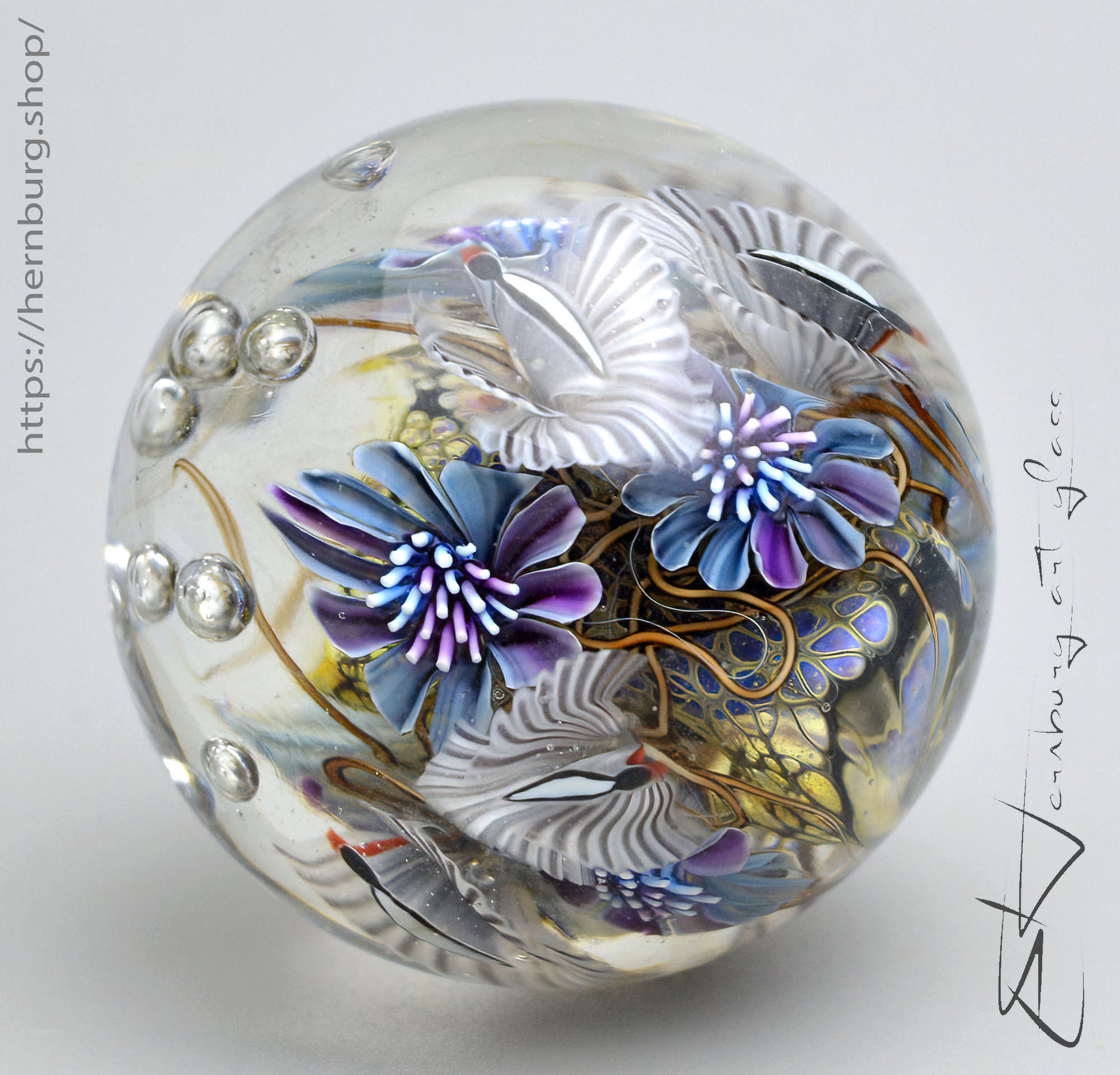 Marble "Postcard from Kyoto" Glass. Collectible sphere. Diameter — 39 mm (1.54”).
