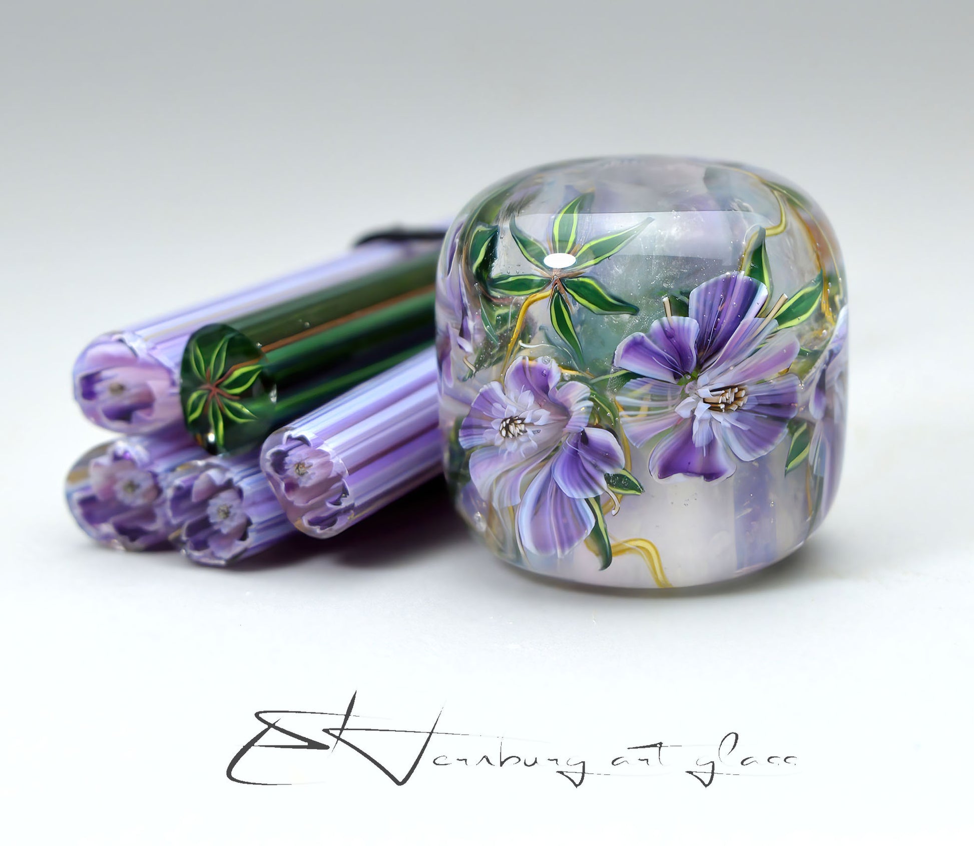 Murini flowers and leaves. Sticks 5 cm long. Materials for lampwork. Glass COE104
