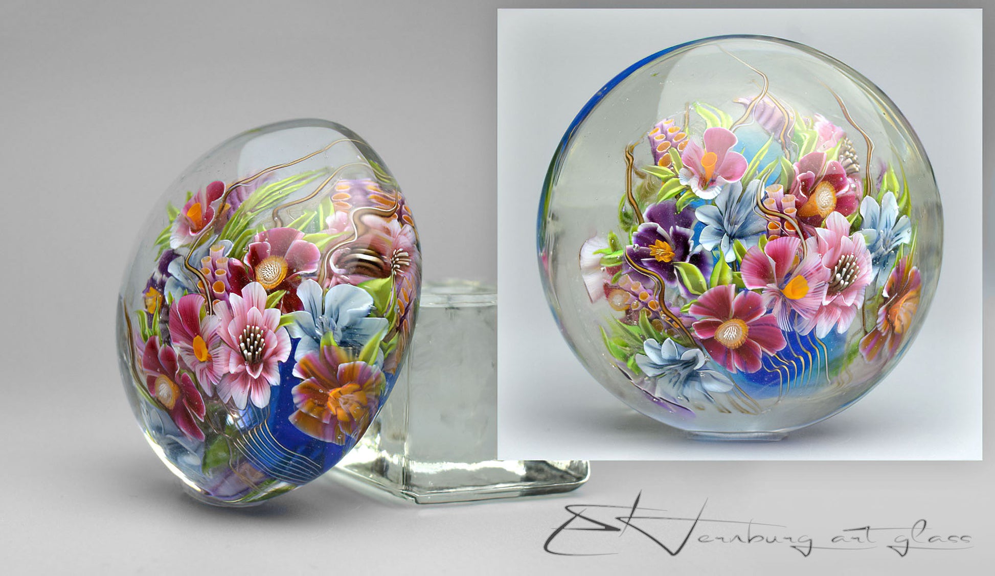 Like everything else in my shop, it is made by me from glass in an open flame. I use glass from all over the world to combine them in the fire and get amazing results.