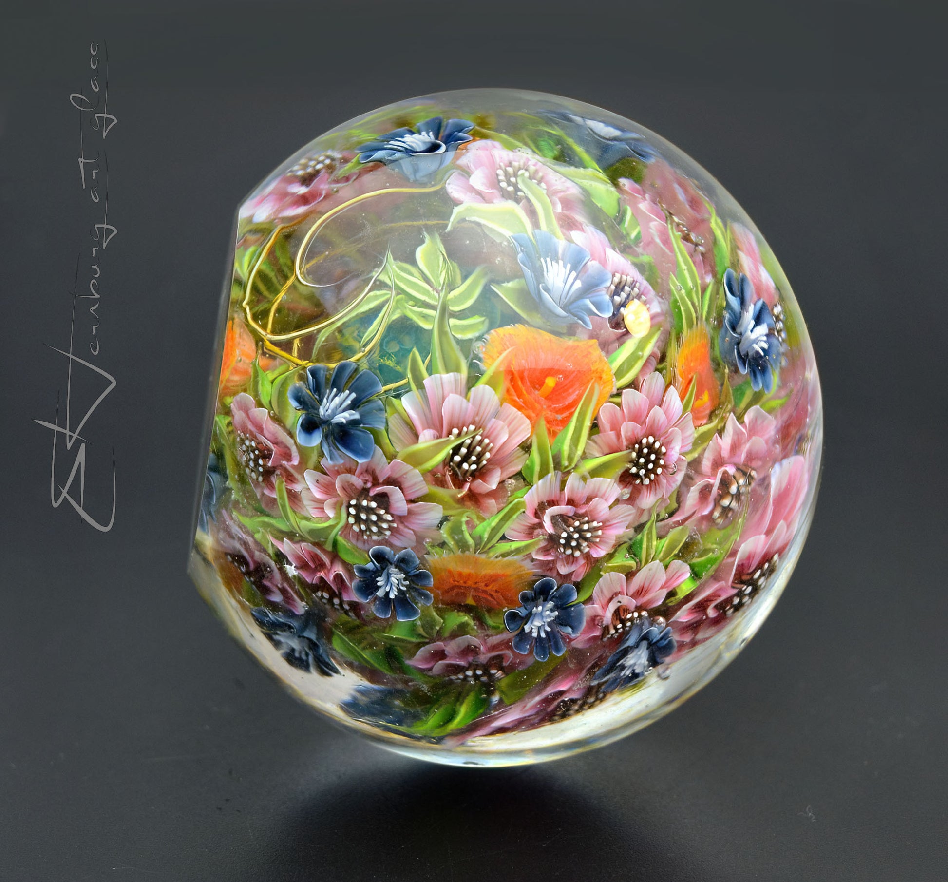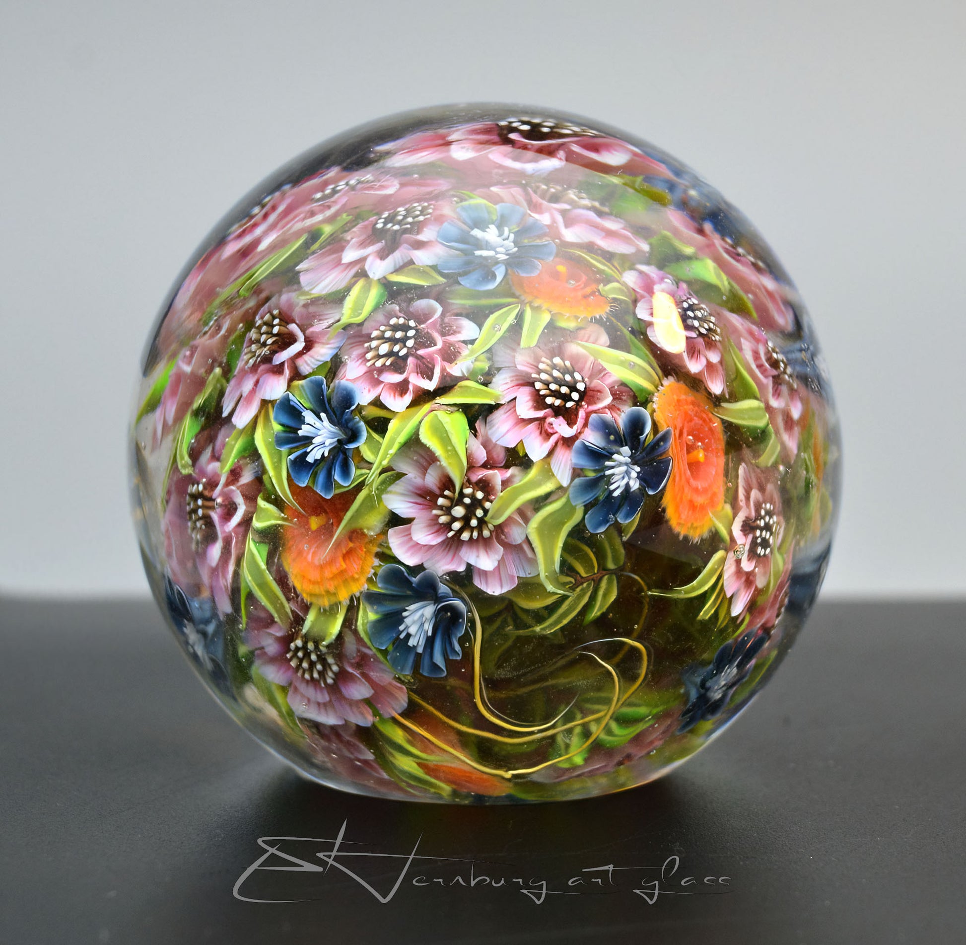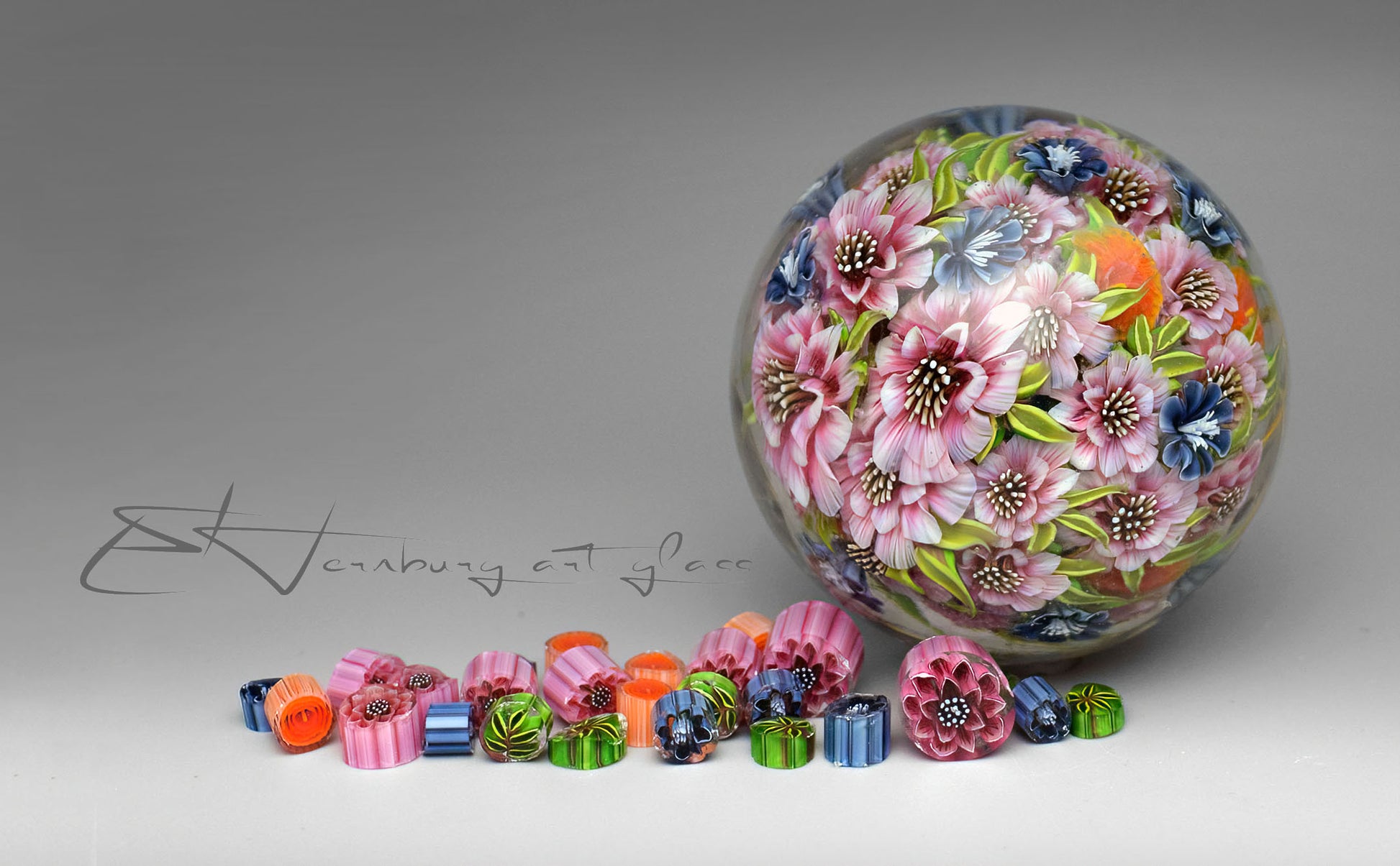 Paperweight "Floral Puzzle". Glass. Diameter 2.48 inch