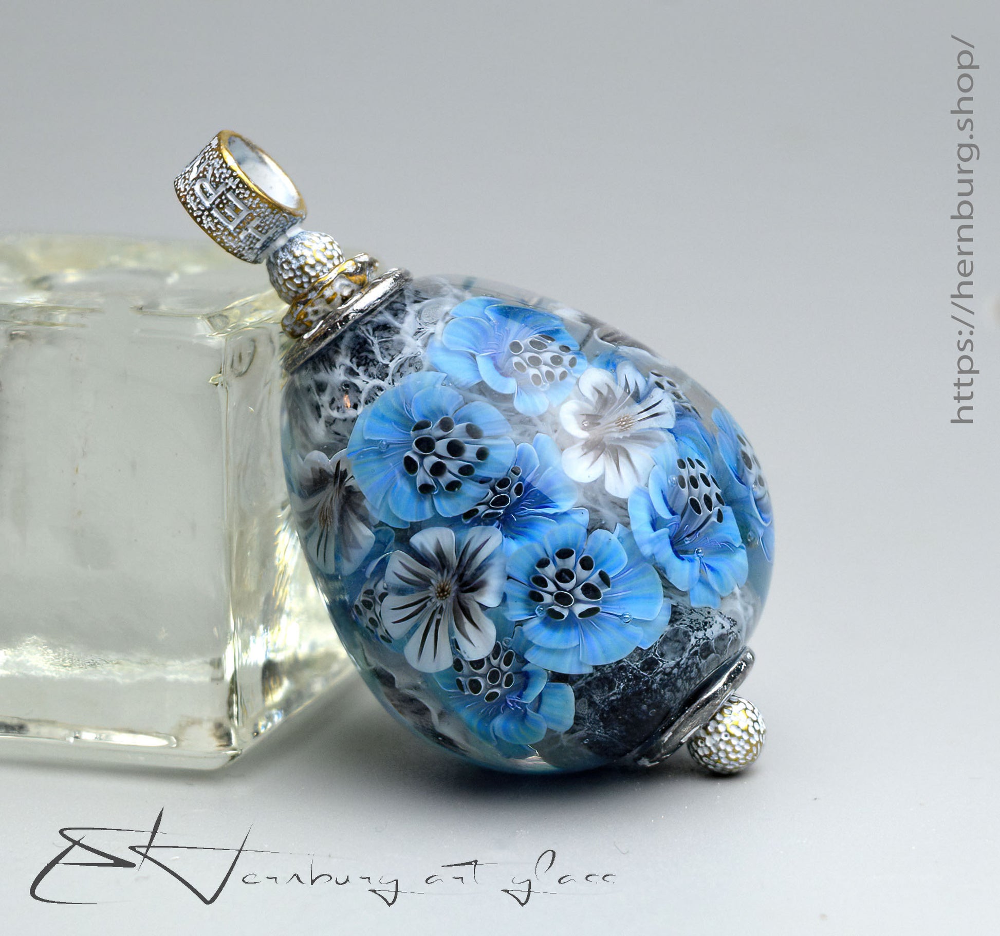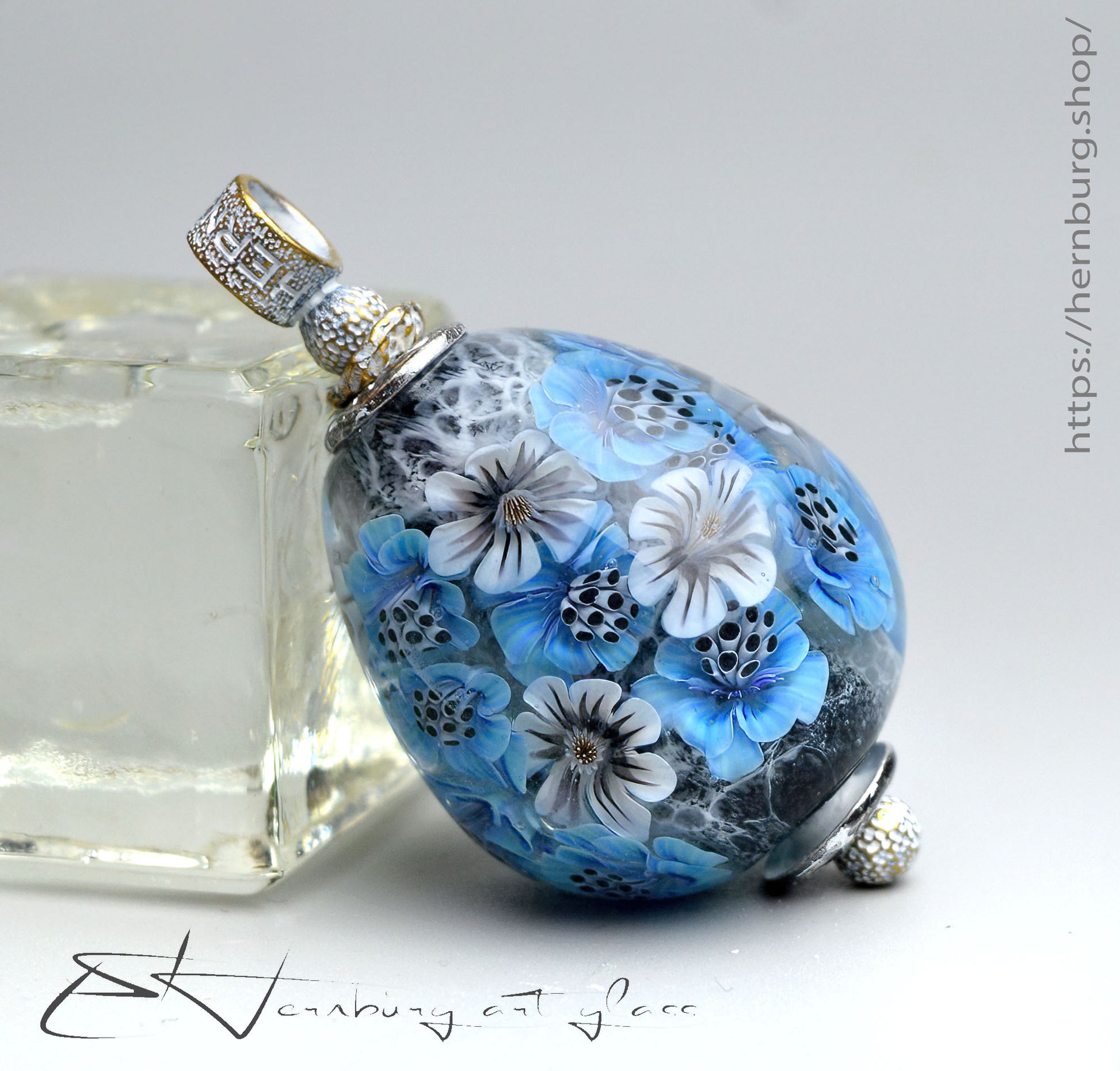 Pendant. Blue Blossom (2). Lampwork glass pendant.