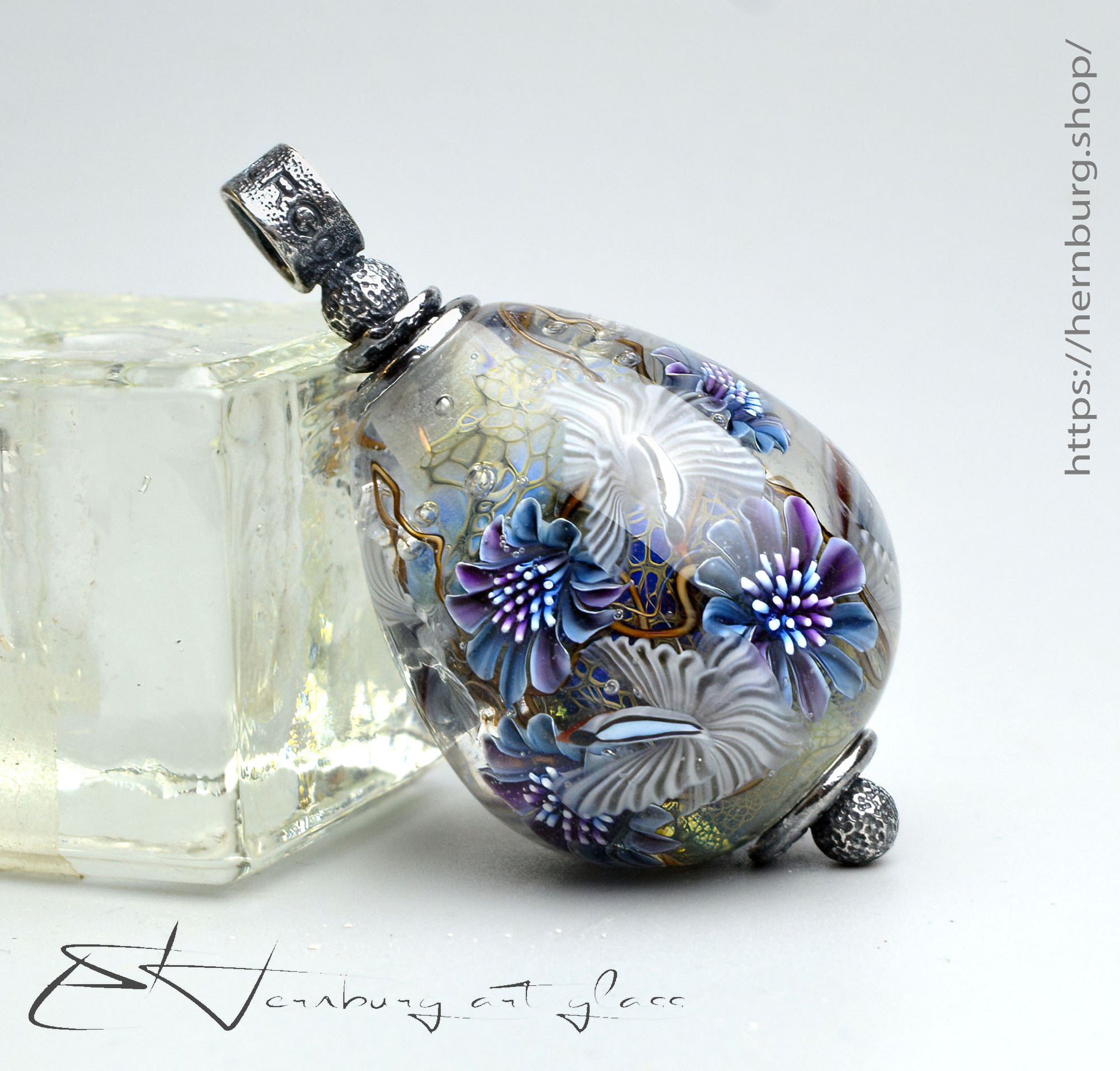 Pendant “Postcard from Kyoto”. Lampwork glass pendant.